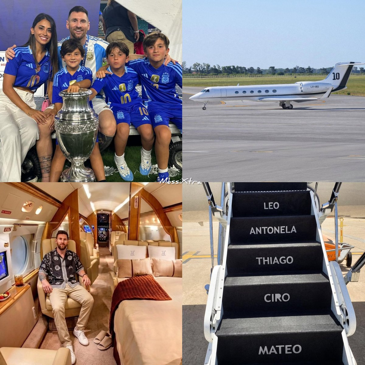 ذكر حساب The Touchline على إكس أن الطائرة تم نقش على الدرج الخاص بها أسماء زوجته وأولاده على درجات الدخول، بينما يظهر رقم 10 الشهير على ذيل الطائرة، في لمسة شخصية تعكس مسيرة ميسي الرياضية والرمزية التي يحملها الرقم.