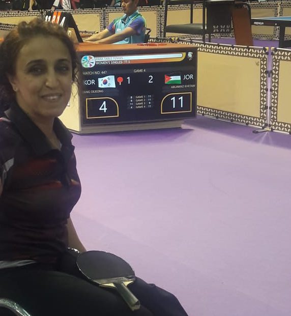 في غضون ذلك تتواصل في جاكارتا فعاليات المشاركة الأردنية في دورة الألعاب البارالمبية الآسيوية حيث اقتربت نجمة كرة الطاولة ختام أبو عوض من منصة التتويج منافسة بقوة على ميدالية ذهبية بفوزين على لاعبتين من الصين تايبيه وكوريا الجنوبية 3-1 وهي ستواجه الثلاثاء لاعبة الصين الشعبية في مهمة حاسمة تؤهل الفائزة للعب على الميدالية الذهبية أو الفضية.