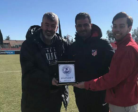 مندوباً عن نادي #الرمثا، قدم مدرب الفريق الرديف تحت 21 احمد الدرزي، درع تكريمي وتذكاري الى نادي #اتليتكو_مدريد الإسباني، تسلمها مدير العلاقات الدولية والمدير الفني للفريق الرديف في نادي اتليتيكو مدريد الإسباني الكابتن اوسكار فرنانديز.