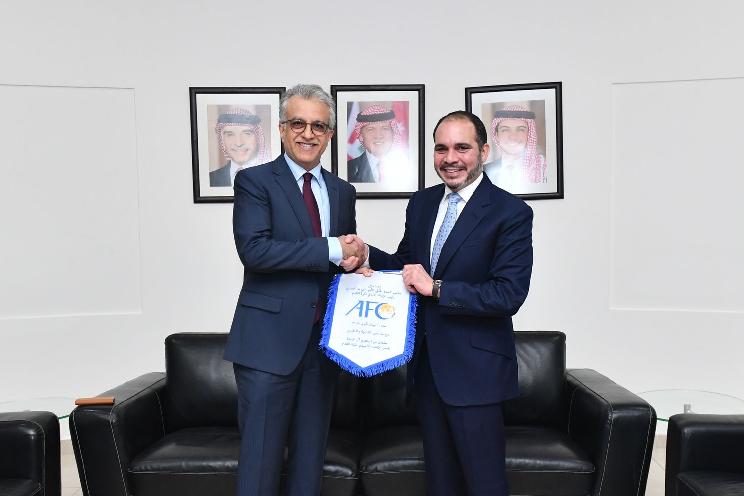 جاء ذلك لدى لقاء رئيس الإتحاد الآسيوي لكرة القدم مع صاحب السمو الملكي #الأمير_علي بن الحسين رئيس الإتحاد الأردني لكرة القدم ، على هامش المباراة النهائية لكأس آسيا للسيدات التي أقيمت مساء الجمعة على استاد عمان الدولي.
