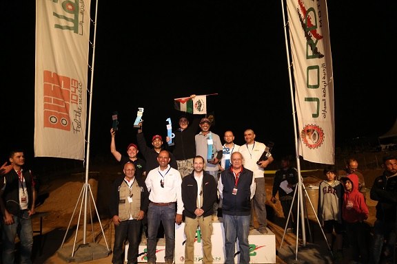 وسلم المدير التنفيذي للأردنية لرياضة السيارات عثمان ناصيف ورئيس لجنة الحكام, بعد نهاية السباق, الجوائز للفائزين.