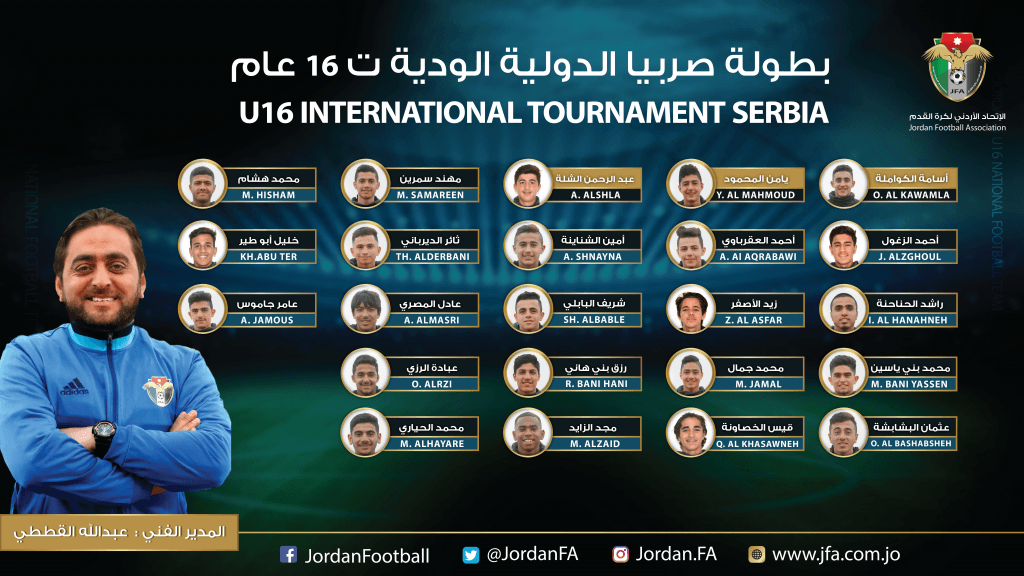 أعلن الجهاز الفني لمنتخب الناشئين تحت 16 عاما لكرة القدم ، بقيادة #عبدالله_القططي ، عن قائمة اللاعبين للمشاركة في #بطولة_صربيا_الدولية الودية التي تمتد من 9 إلى 14 أيار / مايو الحالي ، بمشاركة البلد المضيف الهند وطاجيكستان.