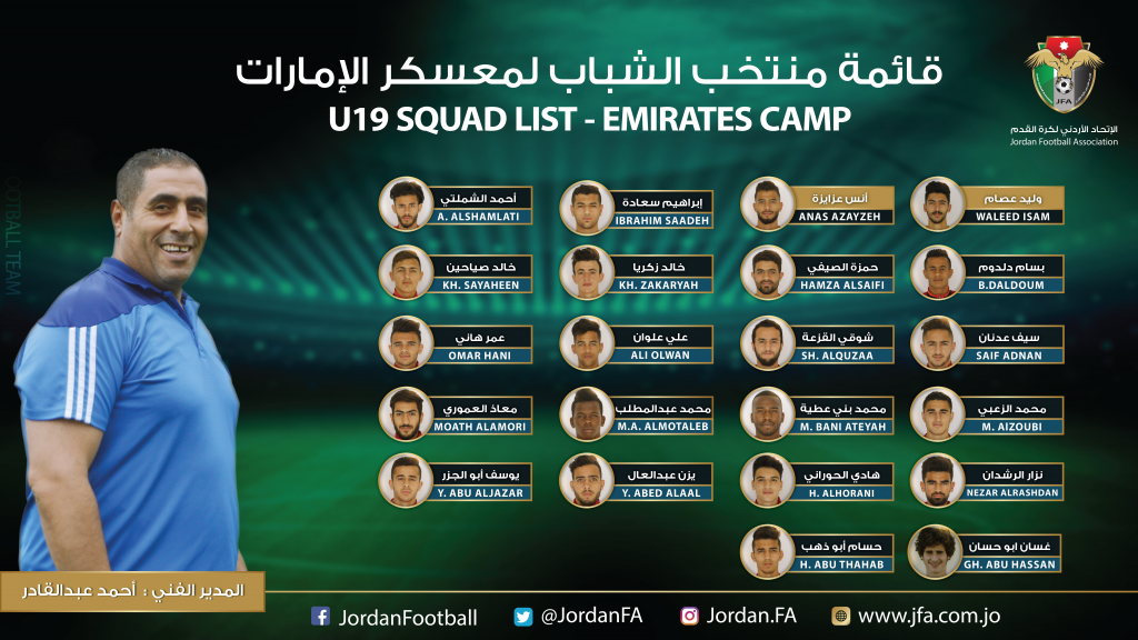 أعلن الجهاز الفني لـ #منتخب_الشباب تحت 19 عاما بقيادة احمد عبدالقادر ، القائمة التي ستغادر صباح الخميس إلى الإمارات العربية المتحدة ، في معسكر تدريبي تحضيراً لخوض نهائيات كأس آسيا للشباب مطلع تشرين الأول / اكتوبر المقبل.