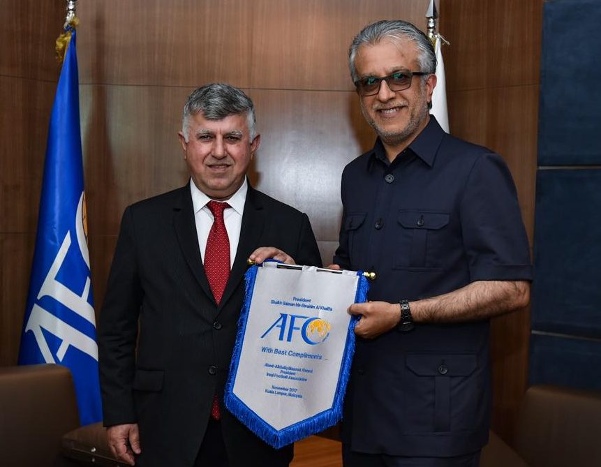 وأشاد مسعود بمواقف الإتحاد الآسيوي الداعمة للعراق خلال عهد الشيخ سلمان بن ابراهيم مستذكراً جهوده الكبيرة في المساعدة برفع الحظر الدولي الجزئي عن إقامة المباريات في العراق ،ومعربا عن ثقته بتواصل دعمه لرفع الحظر الكلي خلال الفترة المقبلة.