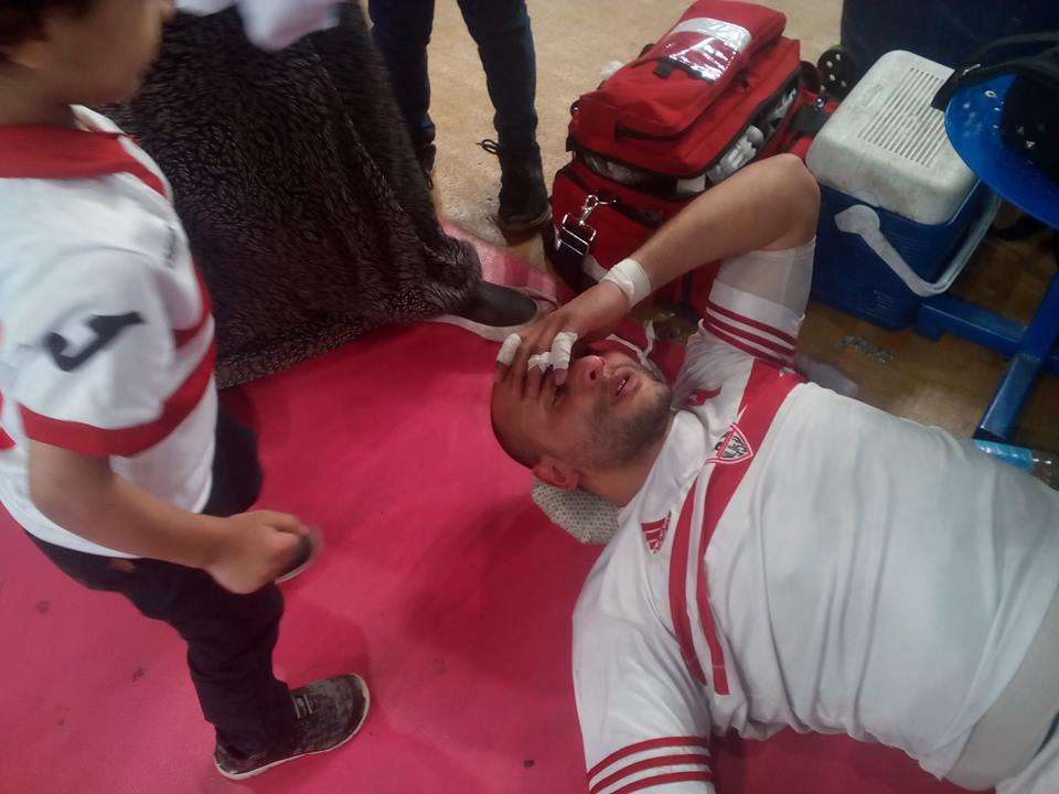 وتتلخص تفاصيل الحادثة أنه وأثناء المباراة النهائية على لقب كأس السوبر الإفريقي ، تعرّض #محمد_هتلر لاعب #الزمالك لحالة إغماء بعد إلتحام قوي مع أحد لاعبي الأهلي ، ليقوم نجل اللاعب وزوجته باقتحام أرضية الصالة الرياضية للاطمئنان عليه ومساعدته على الوقوف.