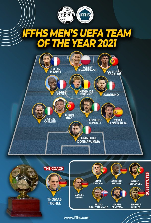 وجاءت التشكيلة المثالية لمنتخب أوروبا للعام 2021، كالآتي:
