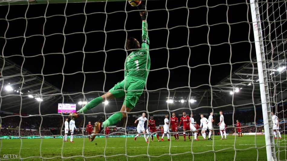 وتقدم سوانزي بهدف مفاجئ قبل نهاية الشوط الأول عندما أبعد فيرجيل فان ديك، المنتقل من ساوثامبتون مقابل نحو 75 مليون إسترليني (104 مليون دولار)، كرة من داخل منطقة الجزاء لكن اقتنصها ماوسون ليسدد في شباك ليفربول ليحرز هدفه السادس في الدوري.