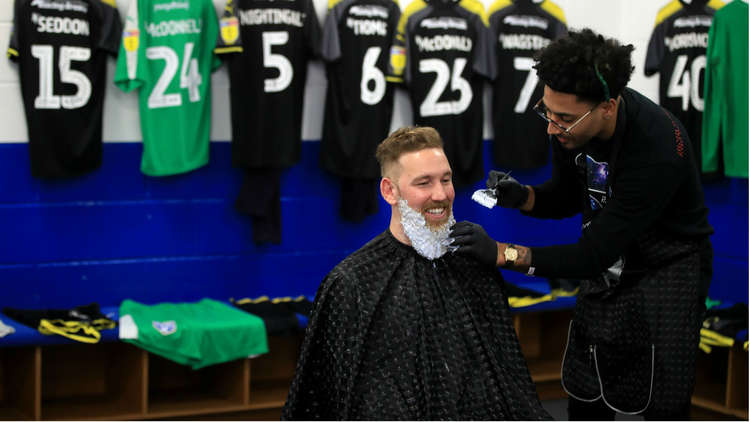 شاهد .. لاعب إنجليزي يفي بوعده و يصبغ لحيته بألوان فريقه - صور و فيديو