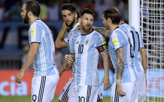 خط الهجوم: ليونيل ميسي (برشلونة الاسباني)، سرجيو أغويرو (مانشستر سيتي الانجليزي)، أنخيل دي ماريا (باريس سان جيرمان الفرنسي)، غونزالو هغواين (يوفنتوس الايطالي)، دييجو بيروتي (روما الايطالي)، لاوتارو مارتينيز (راسينج كلوب الارجنتيني)، كريستيان بابون (بوكا جونيورز الارجنتيني)، أنخيل كوريا (أتلتيكو مدريد الاسباني).