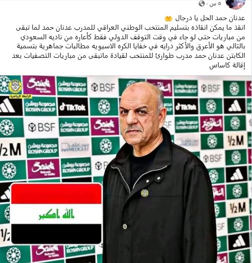 ملاعب - طالب بعض الجماهير العراقية الغاضبة بالتعاقد مع المدرب المغربي الحسين عموتة لانقاذ ما يمكن انقاذه بعد الخسارة التي تعرض لها المنتخب العراقي امام المنتخب الفلسطيني.