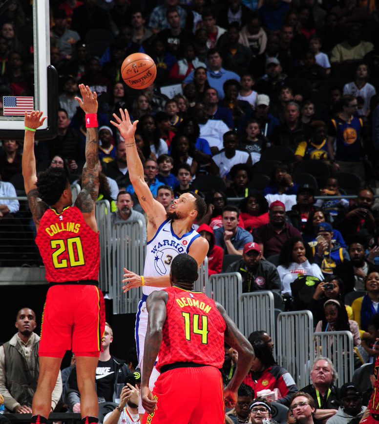 تجاوز جولدن ستيت واريورز إصابة ستيفن #كوري ليفوز حامل اللقب 114-109 على أتلانتا هوكس في دوري كرة السلة الأمريكي للمحترفين الجمعة بعد نهاية مثيرة.