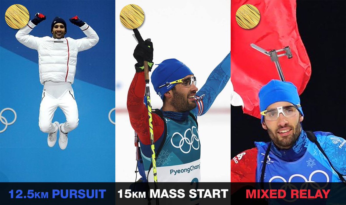 وفاز الفرنسي مارتان فوركاد بذهبية الفرق في سباق التتابع المختلط لرياضة البياتلون مما جعله أكثر اللاعبين تتويجا في دورة الألعاب الأولمبية الشتوية المقامة حاليا في بيونغ تشانغ الكورية الجنوبية.