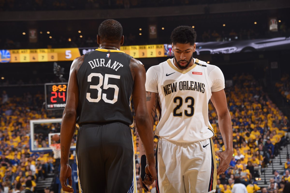 سجل أنطوني ديفيز 33 نقطة واستحوذ على 18 كرة مرتدة ليقود نيو أورليانز #بليكانز للفوز 119-100 على جولدن ستيت #واريورز في المباراة الثالثة بينهما في سلسلة قبل نهائي القسم الغربي لدوري كرة السلة الأمريكي للمحترفين، الجمعة.