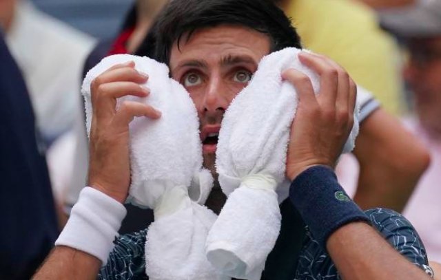 تغلب نوفاك #دجوكوفيتش على المجري مارتون #فوتشوفيتش 6-3 و3-6 و6-4 و6-صفر في الدور الأول لبطولة أميركا المفتوحة للتنس الثلاثاء بعد اللعب وسط درجات حرارة عالية ما دفع المسؤولون إلى تطبيق لائحة الحرارة والراحة في منافسات الرجال لأول مرة.