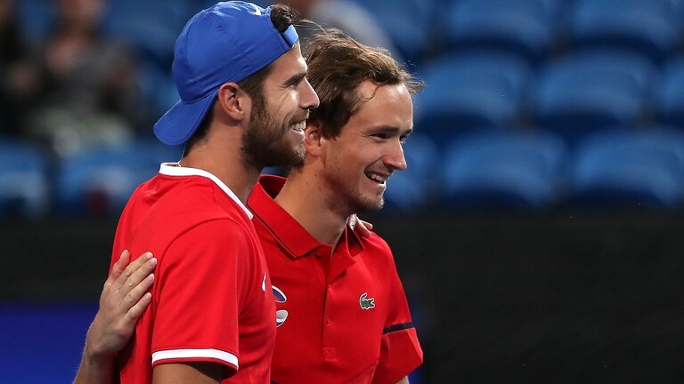 وحسم المنتخب الروسي اليوم الأحد مباراتي الفردي عن طريق الثنائي دانييل مدفيديف وكارين خاتشانوف وتقدم بانتصارين نظيفين.