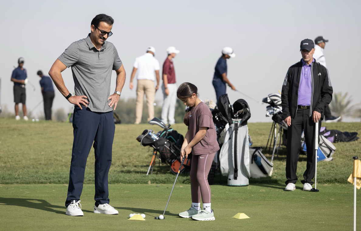سموّ الأمير @TamimBinHamad يُشارك أبناء شعبه فعاليات اليوم الرياضي ويمارس لعبة الجولف في نادي الدوحة للجولف@AlkassTVSports | #اليوم_الرياضي_قطر #اليوم_الرياضي | #نديب_قطر | #قطر 🇶🇦 pic.twitter.com/xrvGdgXlp7
