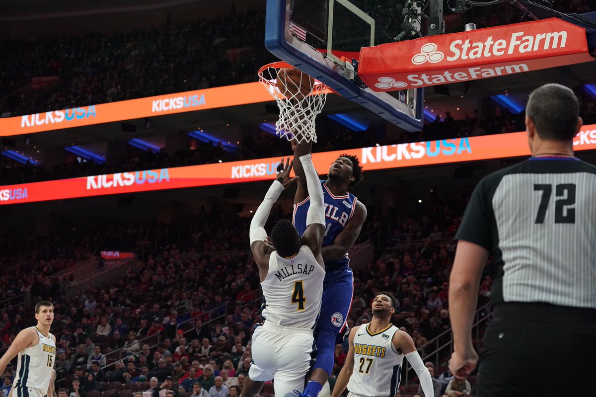 بات فريق #فيلادلفيا سيفنتي سيكسرز قريباً من الحصول على أفضلية اللعب على أرضه في الجولة الأولى من الأدوار الاقصائية في دوري كرة السلة الأمريكي للمحترفين بعد فوزه 123-104 على دنفر #ناجتس الاثنين.