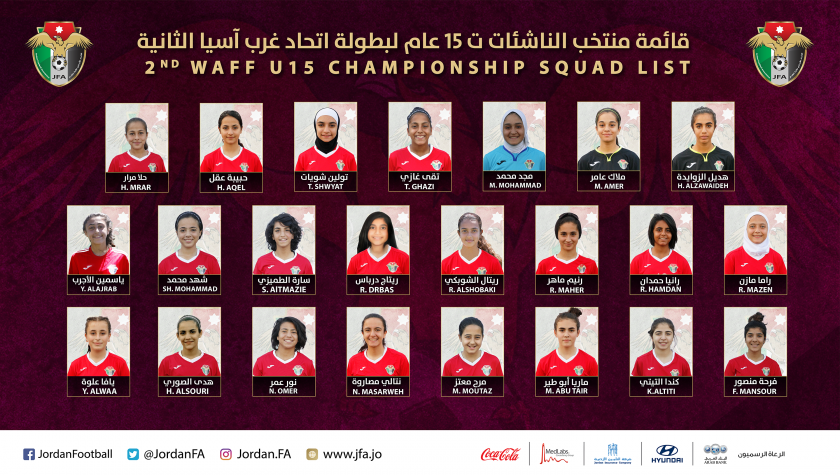 أعلن اليوم الأحد الجهاز الفني لمنتخب الناشئات ت15 لكرة القدم، بقيادة المدرب عز الدين شيح، قائمة اللاعبات استعداداً للمشاركة في بطولة غرب آسيا بالفترة من 12 - 16 الجاري بالاردن.