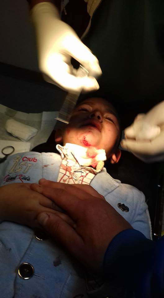 الطفل جواد، الذي حرص على تشجيع فريقه الرمثا في المدرجات ، لم يتوقع انه سيعود للمنزل مصابا بجروح قطعية ، بعد تعرضه للضرب بأحد المقاعد التي كانت تتساقط على ارضية الملعب.