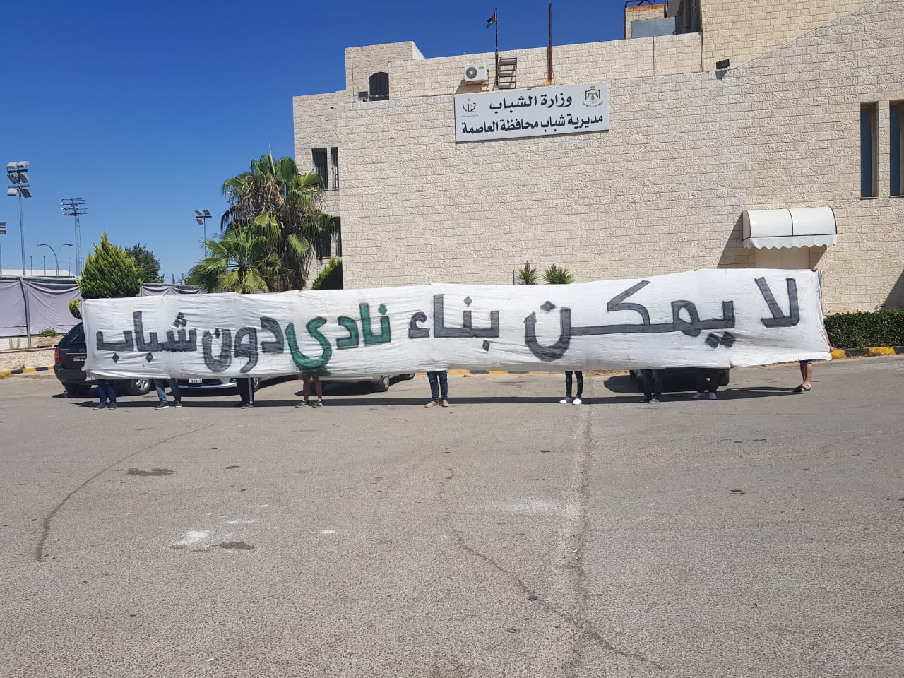 نفذ عدد غفير من جماهير نادي #الوحدات يتقدمهم #إياد_الشملتي عضو مجلس الإدارة ، اعتصاماً مفتوحاً بعد ظهر اليوم الأحد أمام مقر وزارة الشباب ، وذلك للاحتجاج على مماطلة الإدارة باستقبال طلبات الجماهير للعضوية .