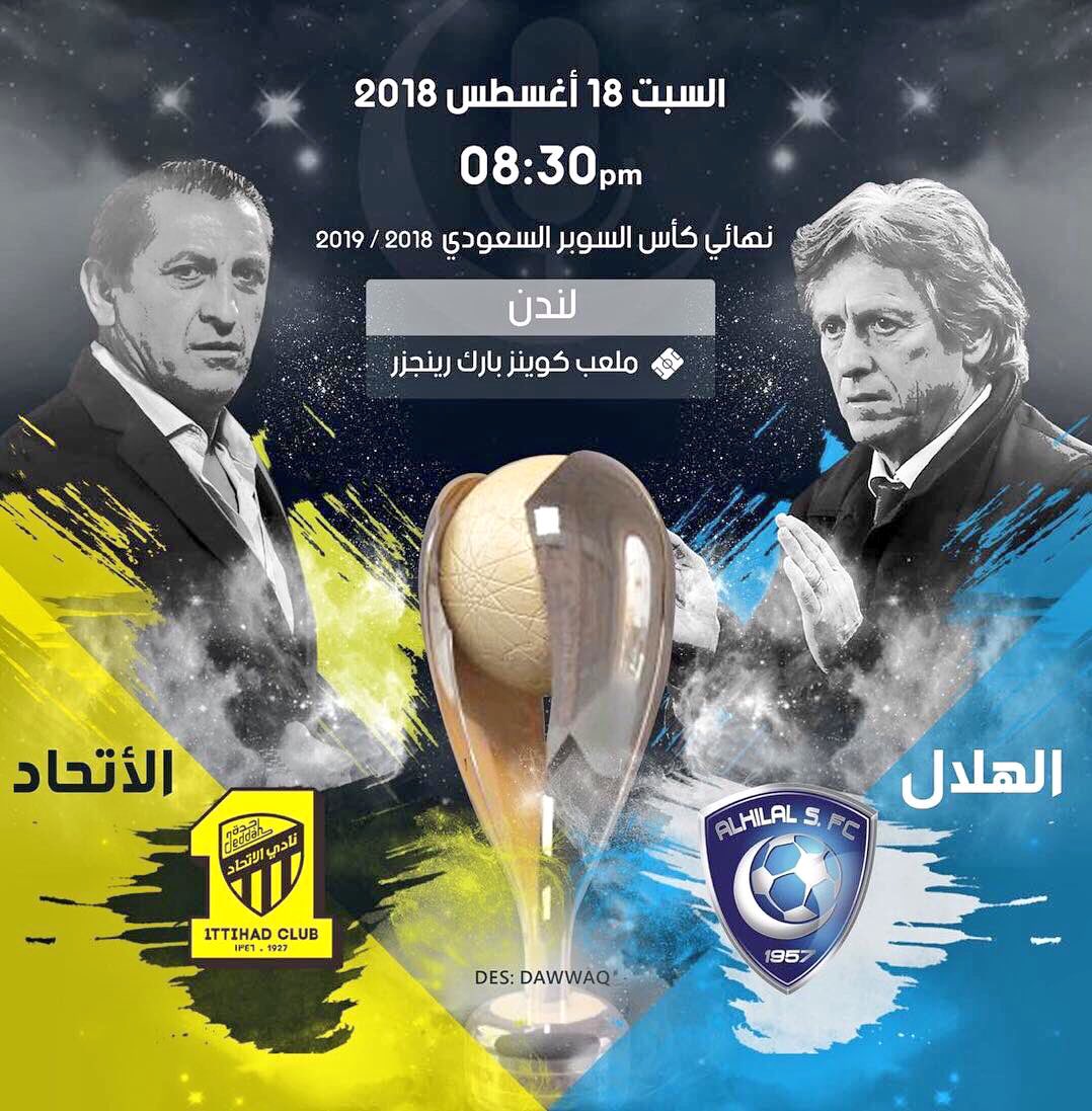 أعلن كلا مدربي الفريقين الهلالي والاتحادي، جورجي جيسوس ورامون دياز عن التشكيلة الرسمية لمواجهة القمة السعودية الكبرى و افتتاح موسم الكرة المحترفة في بلاد الحرمين، كلاسيكو الشرق الأوسط بين #الهلال و #الاتحاد على ملعب لوفتس رود في العاصمة البريطانية لندن للمنافسة على لقب السوبر السعودي.