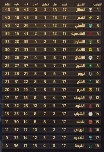 ملاعب - انتهت منافسات الجولة الـ 18 من مسابقة دوري روشن للمحترفين، وحملت معها العديد من المفاجآت بترتيب أندية البطولة.