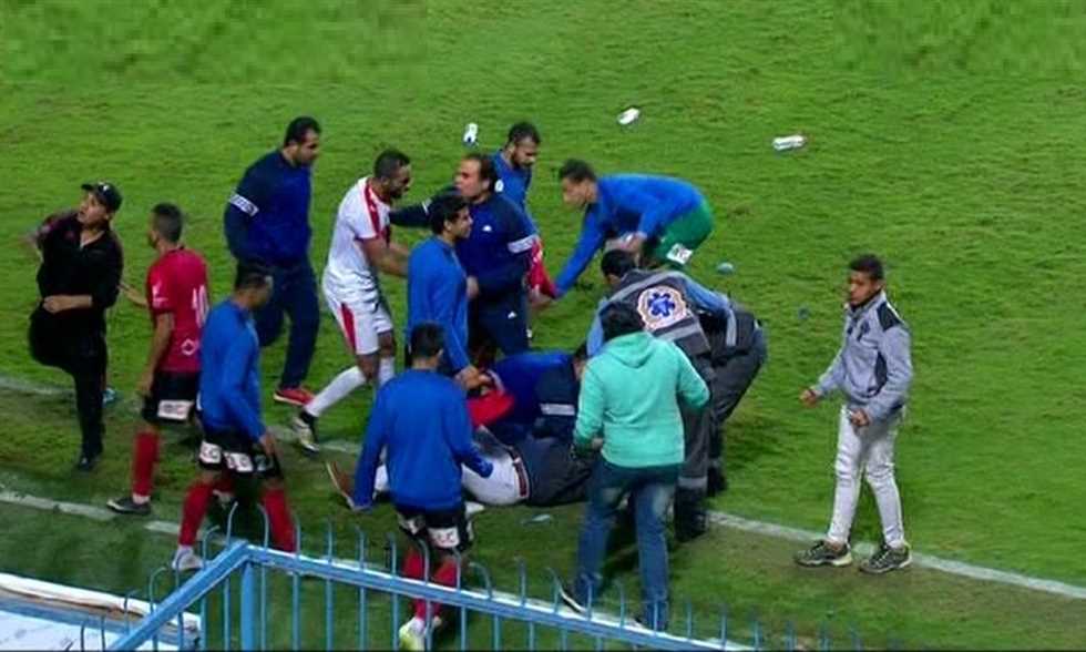 وألقت جماهير الزمالك قوارير المياه على الجهاز الفني والإداري لـ #الداخلية واصابت إحداها رأس علاء عبد العال مدرب الفريق خلال الفوز 2-1 في ختام الجولة 15 من المسابقة يوم الخميس الماضي.