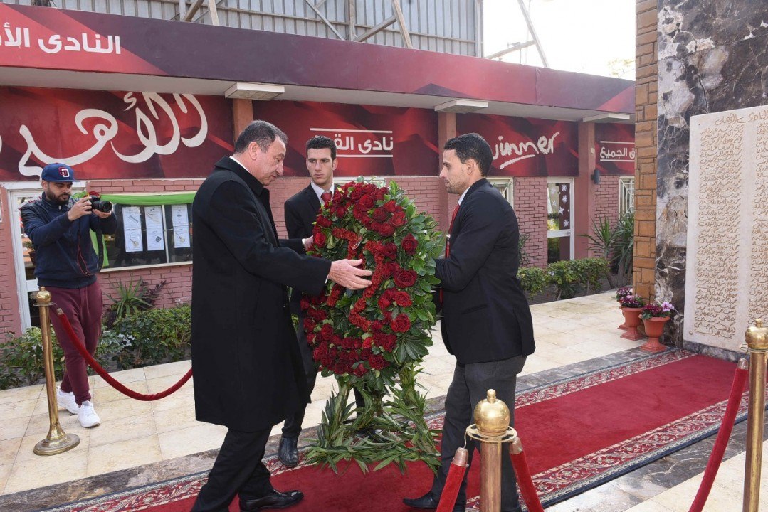 وقام رئيس النادي الاهلي #محمود_الخطيب واعضاء الادارة ولاعبيه في كل اللعبات الرياضية، بوضع أكليلا من الزهور على النصب التذكاري لأبناء الأهلي بمقر الجزيرة، وقراءة الفاتحة ترحمًا على أرواحهم.