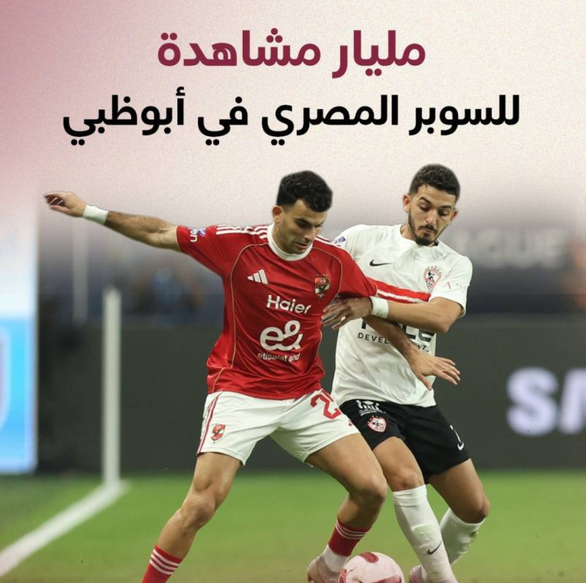ملاعب - أعلنت رابطة المحترفين الإماراتية عن رقم تاريخي وقياسي غير مسبوق لمشاهدات كأس السوبر المصري والذي تستضيفه العاصمة أبوظبي بين الاهلي والزمالك والتي انتهت بفوز الاهلي 2-0.