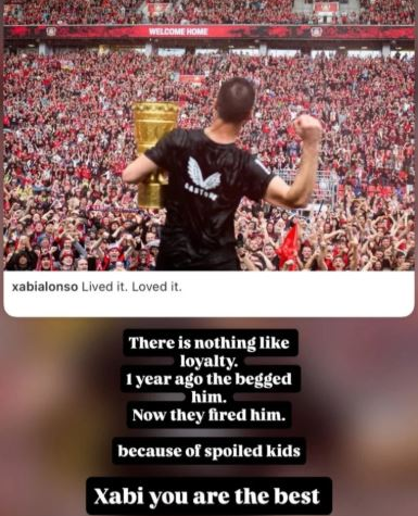 ونشر نورمحمدوف، المعروف بتشجيعه لنادي ريال مدريد، صورة لألونسو وهو يحمل درع الدوري الألماني مع باير ليفركوزن، معلقاً في منشوره: "لا يوجد شيء أفضل من الوفاء.. قبل عام واحد توسلوا إليه، والآن قاموا بطرده بسبب أطفال مدللين.. تشابي، أنت الأفضل".