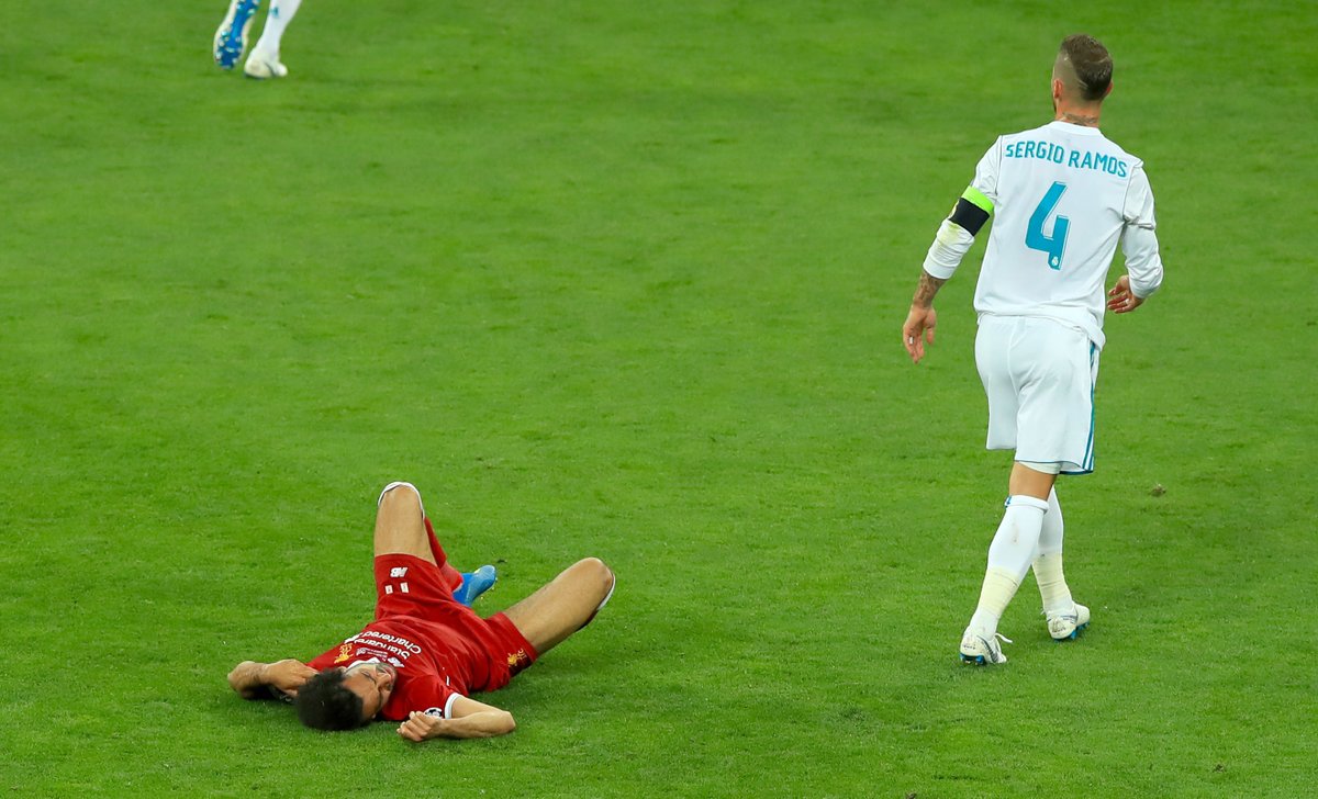 وتسبب سيرجيو راموس بإخراج محمد صلاح من مباراة ريال مدريد وليفربول الإنجليزي في نهائي دوري أبطال أوروبا 2018، مسبباً له إصابة بالكتف أبعدته عن مباراة منتخب مصر الأولى في مونديال روسيا أمام أوروغواي.