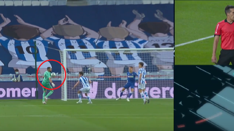 وإذا ما شاهدتم كرة هدف ريال سوسيداد الملغي فسيمكن ملاحظة وجود مارينو متسللًا على خط الرؤية القطري لتيبو كورتوا وقت تسديد يانوزاي، وهو ما أعاق رؤيته وتُعاقب عليه بالفعل تقنية الفيديو، لذا أُلغي الهدف.