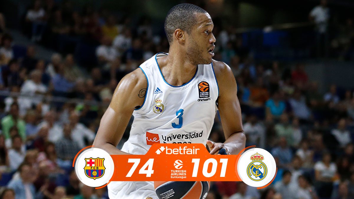 ضرب #ريال_مدريد سلة غريمه التقليدي برشلونة لاسا على أرضه وبين جماهيره في كلاسيكو السلة الإسباني ضمن الجولة 23 من دور المجموعات لـ #الدوري_الأوروبي لكرة السلة الجمعة، وبنتيجة 101 -74.