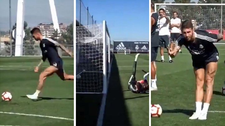 ففي التدريبات التي جرت قبل لقاء ألافيس أحرز راموس 4 أهداف في شباك الحارس الجديد للميرنغي، ثييبو #كورتوا ، عبر تسديد الركلات الحرة غير المباشرة، والتي أتقن إسكانها لمرمى الحارس البلجيكي الذي وقف متفرجا على كل الكرات الكرات، ليختم راموس هذه التسديدات بسخرية من البلجيكي كما يوضع الفيديو الذي يلي هذه السطور ..