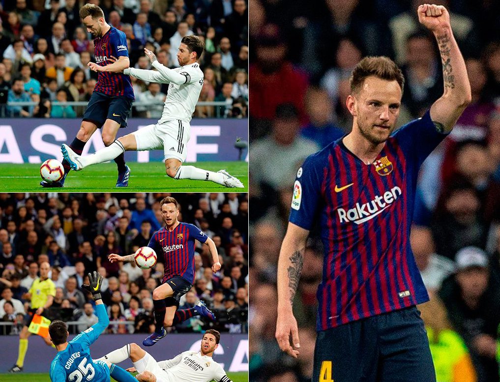 سجل نجم برشلونة الكرواتي إيفان #راكيتيتش هدفاً على طريقة الكبار من تمريرة في العمق و على إثر تبادل للكرة بينه وبين سيرجيو #روبيرتو تاركاً راموس خلفه و أخيراً الكرة (لوب) فوق حارس #ريال_مدريد تيبو كورتوا بلدغة كرواتية على طريقة بانينكا، لينتهي الشوط الأول بتقدم البلوغرانا و ابتعادهم حتى هذا الشوط بـ12 نقطة عن الملكي