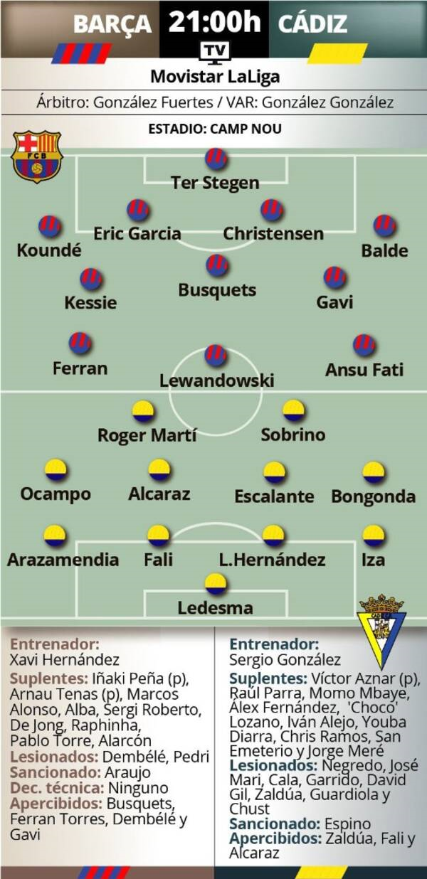 وشهدت قائمة تشافي هيرنانديز، المدير الفني لبرشلونة، عودة سيرجيو بوسكيتس، عقب تعافيه من الإصابة، بينما يفتقد الفريق خدمات "بيدري وعثمان ديمبلي ورونالد أراوخو".