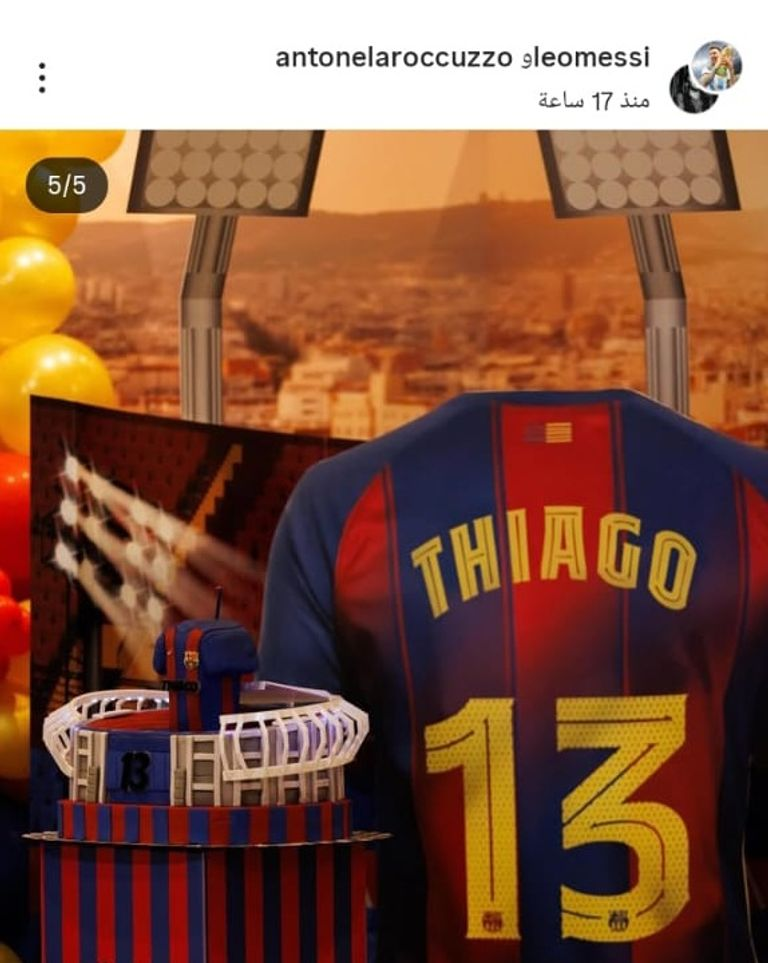 واحتفل ليونيل ميسي بعيد ميلاده نجله تياغو، الثالث عشر، والذي نشرت أنتونيلا روكوزو زوجة اللاعب صوراً منه عبر حسابها بموقع "إنستغرام" للتواصل الاجتماعي.
