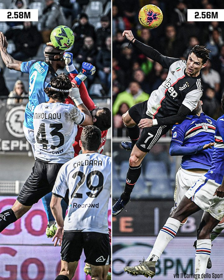 ووفقا لما ذكرته شبكة ESPN، يوم الثلاثاء، يعد ذلك رقما قياسيا في الدوري الإيطالي أكبر من الذي حققه كريستيانو رونالدو قبل حوالي ثلاثة أعوام بقميص يوفنتوس عندما سجل برأسه أمام سامبدوريا، إذ بلغت وقتها القفزة حوالي مترين و56 سنتيمترًا.