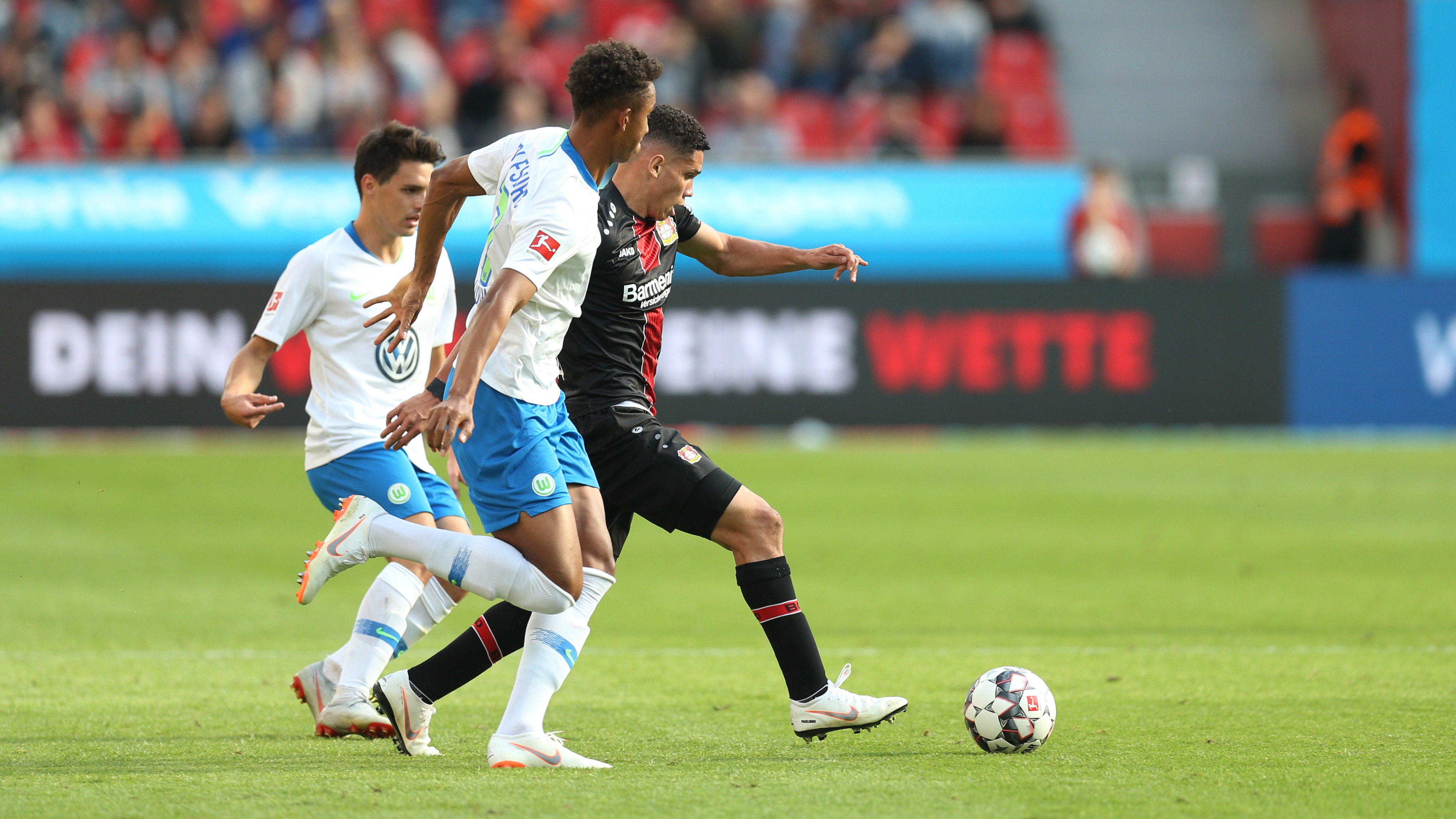 وعلى ملعب "باي أرينا" افتتح ليفركوزن التسجيل عن طريقه الجامايكي الشاب #ليون_بايلي في الدقيقة 24 ، قبل أن يرد الضيوف بثلاثية حملت توقيع الحارس النمساوي رمضان أوزكان في الدقيقة 36 بالخطأ في مرمى فريقه.