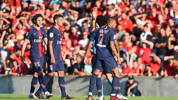 وتلقى مبابي (19 عاما) الذي اختير أفضل لاعب شاب في كأس العالم 2018 ، بطاقة حمراء مباشرة في اللحظات الأخيرة من المباراة ضد #نيم (4-2) في المرحلة الرابعة من الدوري الفرنسي ، لدفعه بقوة لاعب الفريق المنافس تيجي سافانييه إثر ارتكابه عرقلة قاسية بحقه، الذي تلقى بدوره عقوبة الإيقاف لخمس مباريات.