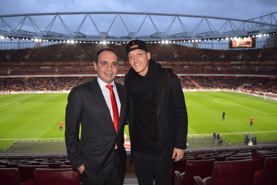 نشر لاعب أرسنال والمنتخب الألماني مسعود أوزيل صورة له تجمعه بسمو الأمير علي بن الحسين رئيس الاتحاد الأردني لكرة القدم، وكتب النجم الألماني عليها : " حان وقت شرب القهوة، أنا مسرور جداً بهذا اللقاء، شكراً كثير لزيارتك لي في لندن سمو الأمير."