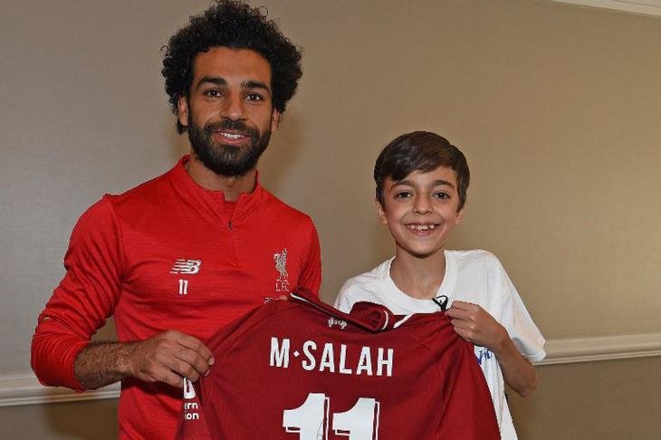 حقق الدولي المصري #محمد_صلاح نجم نادي ليفربول الإنجليزي ، أمنية طفل سوري يبلغ من العمر (16 عاماً) ويعاني من الضمور العضلي ، وذلك خلال لقائه بجولة "الريدز" في الولايات المتحدة.