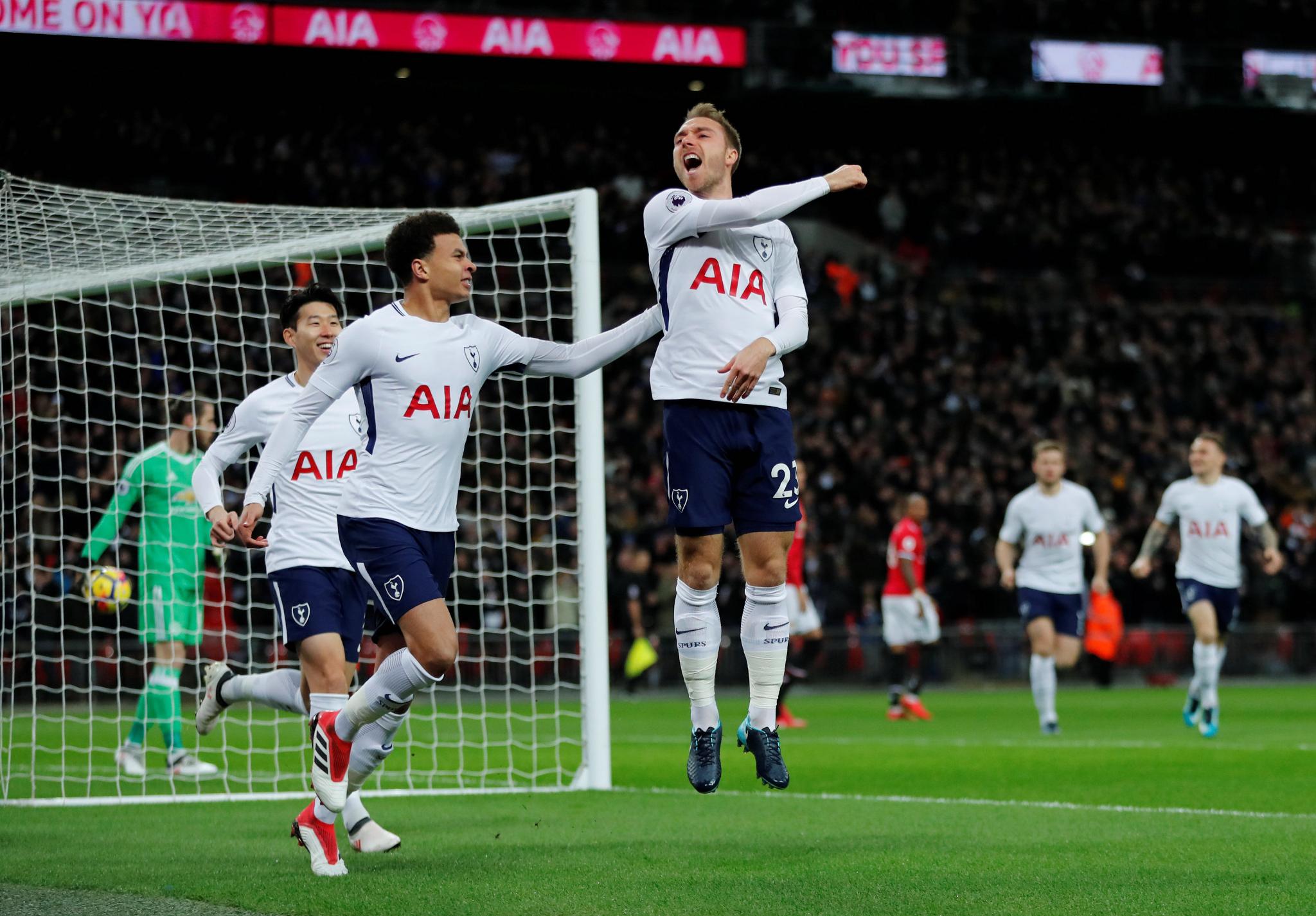 وافتتح #كريستيان_اريكسن التسجيل لأصحاب الأرض عند الثانية 11 من زمن الشوط الأول "رقم قياسي"، قبل أن يعمق #فيل_جونز جراح "الشياطين الحمر" بتسجيله الهدف الثاني لتوتنهام عند الدقيقة 28، بالخطأ في مرماه.
