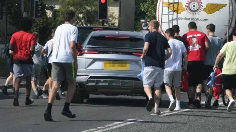 وتهافتت أعداد من جماهير المان يونايتد على رونالدو عقب انتهاء مران الفريق، أثناء خروجه من الملعب.