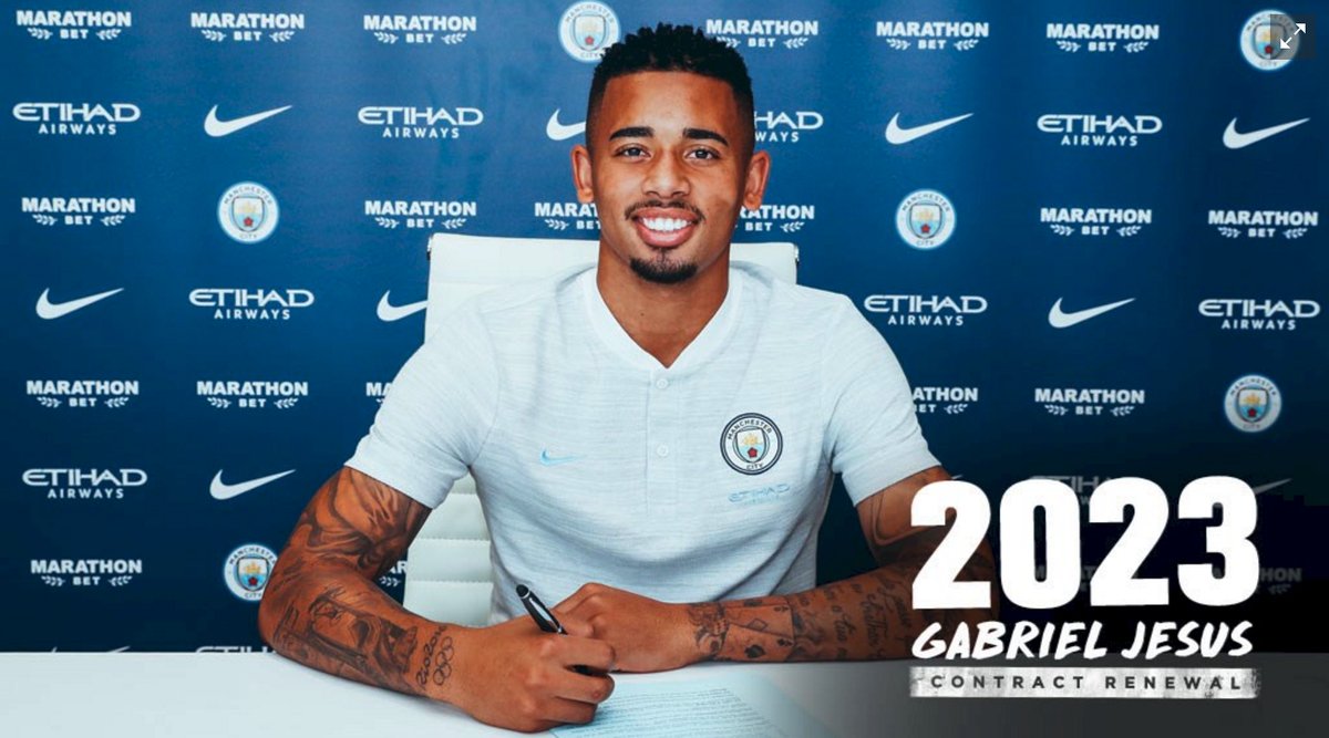 وقع المهاجم الدولي البرازيلي غابرييل #جيسوس عقداً جديداً يبقيه مع فريقه مانشستر سيتي، بطل الدوري الإنكليزي لكرة القدم، حتى عام 2023 بحسب ما كشف الأخير الجمعة في موقعه الرسمي.