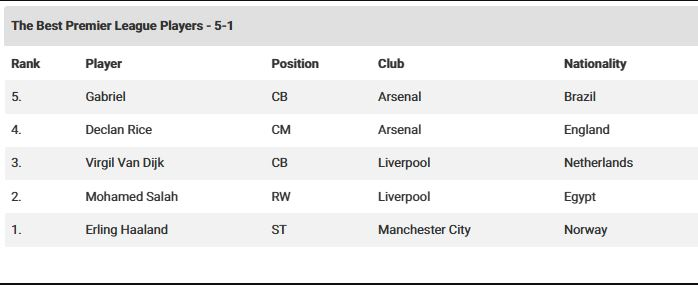 وأوضحت الشبكة، أن محمد صلاح حل ثانياً في قائمة الأفضل بمسابقة الدوري الإنجليزي الممتاز هذا الموسم بناء على العديد من المعايير أبرزها أداء اللاعب منذ وصوله إلى المسابقة، وأهميته مع نادي ليفربول، بجانب عدد الأهداف والتمريرات الحاسمة".