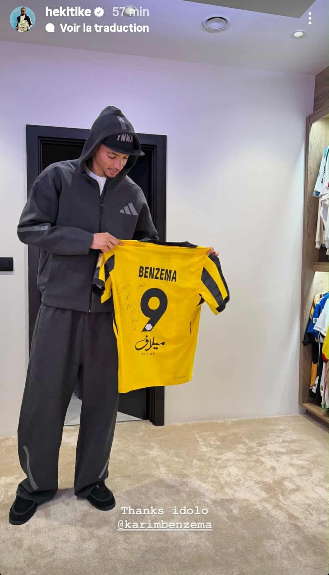 نشر هوغو إيكيتيكي عبر حسابه الشخصي على "إنستغرام"، صورته وهو يحمل قميص "النمور" برقم بنزيما وتوقيعه، إضافة إلى رسالة كتبها اللاعب المخضرم على القميص.