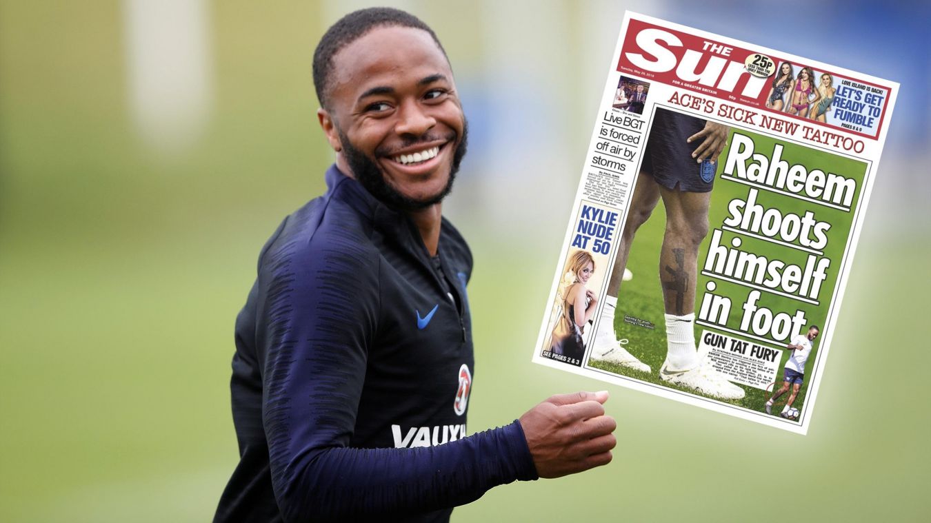 دافع رحيم #سترلينغ لاعب منتخب إنجلترا، الثلاثاء عن وشم جديد رسمه على ذراعه اليمنى على شكل بندقية بعد أن وصفه نشطاء مناهضون لامتلاك أسلحة بأنه ”مثير للاشمئزاز“.