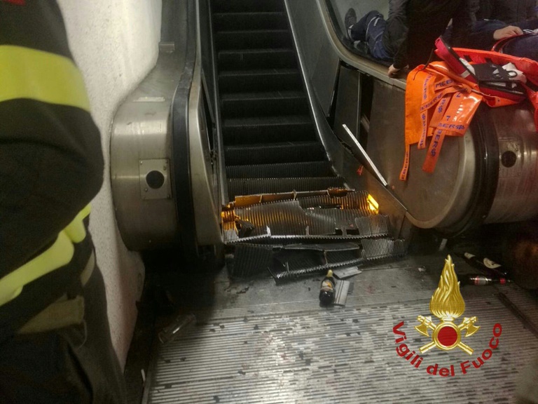 ويقع السلم في محطة قطار أنفاق "لا ريبوبليكا" وسط روما، تم إغلاقها من قبل الشرطة لإتاحة المجال أمام فرق الإسعاف لمعالجة المصابين.