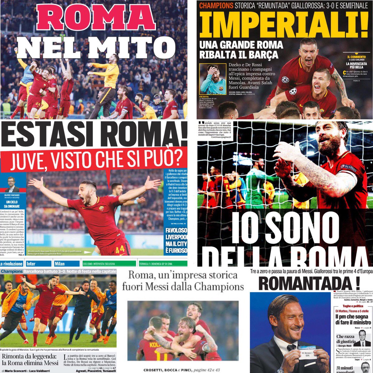 ترددت كلمة "جنون" على ألسن العديد من المشجعين والمعلقين الذين تابعوا فوز نادي #روما الايطالي على ضيفه برشلونة الإسباني بثلاثية نظيفة ، وبلوغه نصف نهائي دوري أبطال أوروبا في كرة القدم ، بعد تأخره ذهابا 1-4.